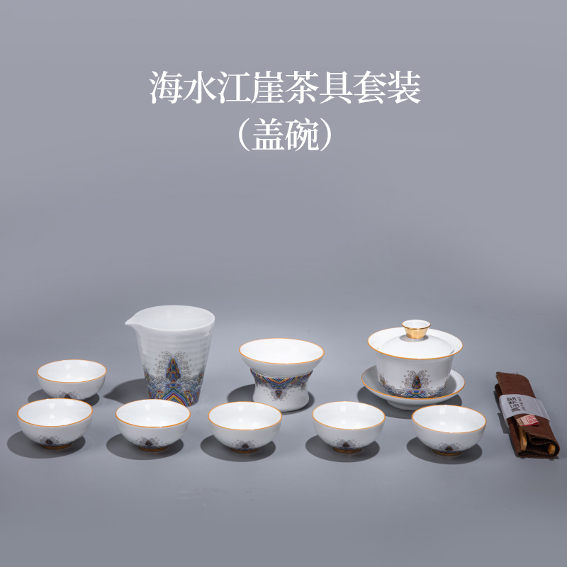 唐瓴海水江崖金絲琺瑯彩整套功夫茶具套裝家用陶瓷辦公室高端茶杯